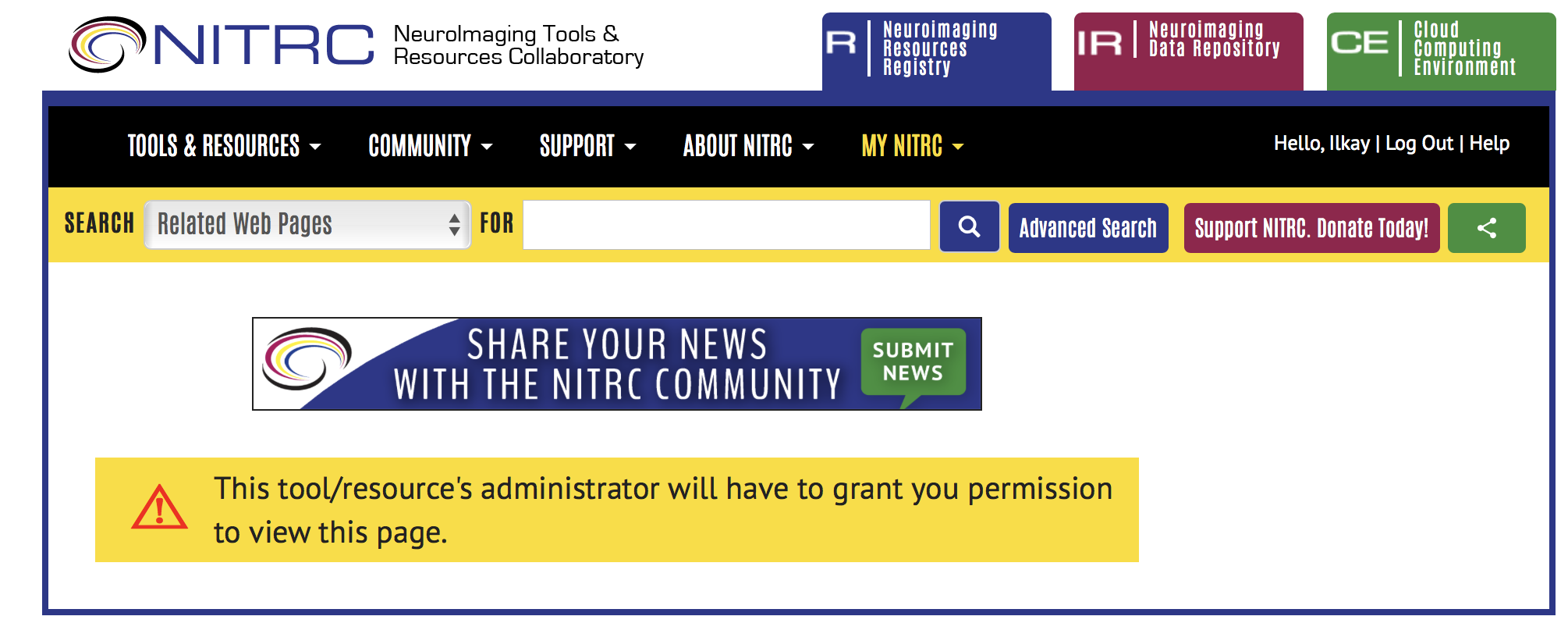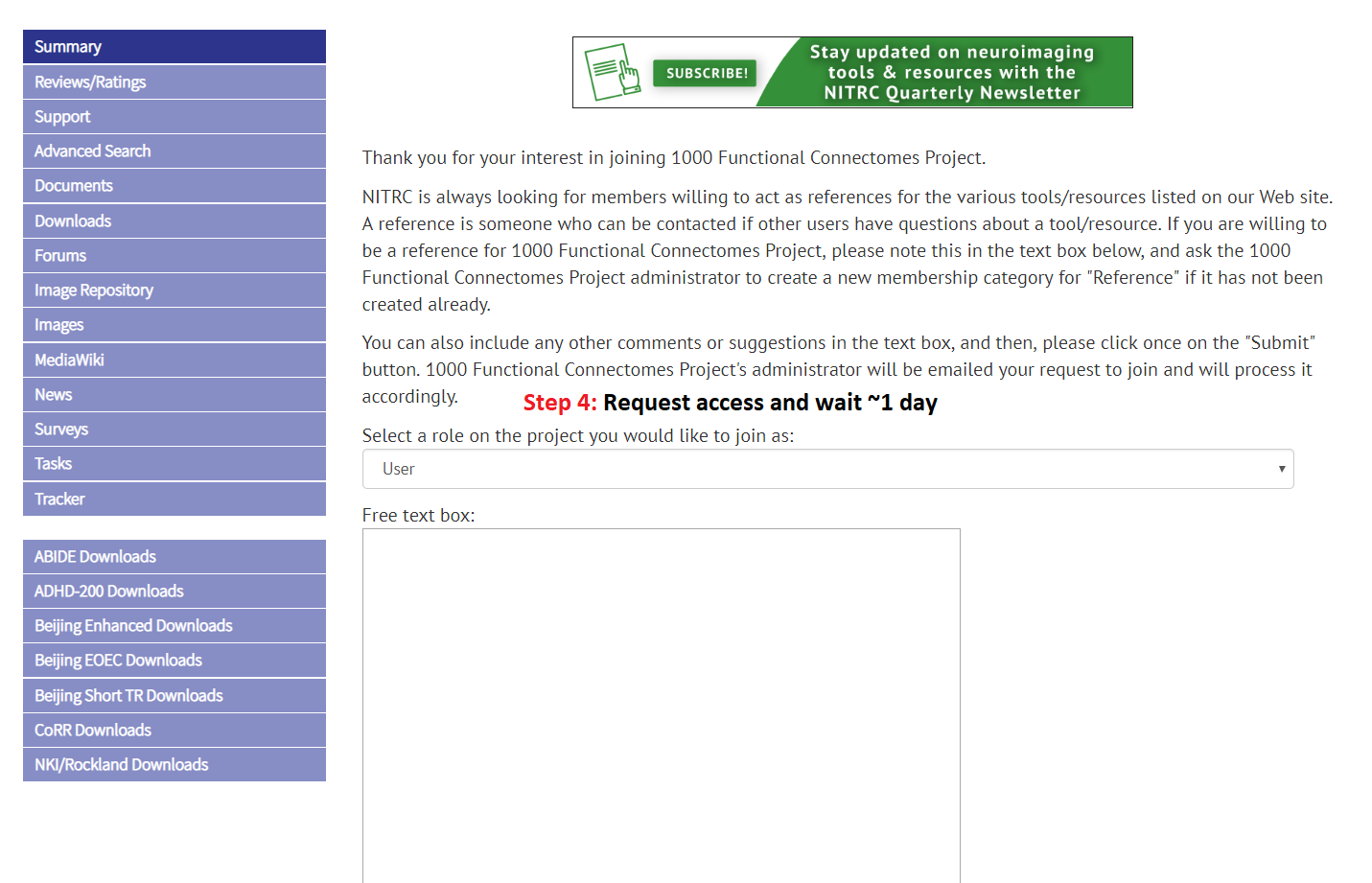 I'm getting this error when trying to download the "NKI Rockland Sample – Multiband Imaging Test-Retest Pilot Dataset" dataset from NITRC, what should I do?
